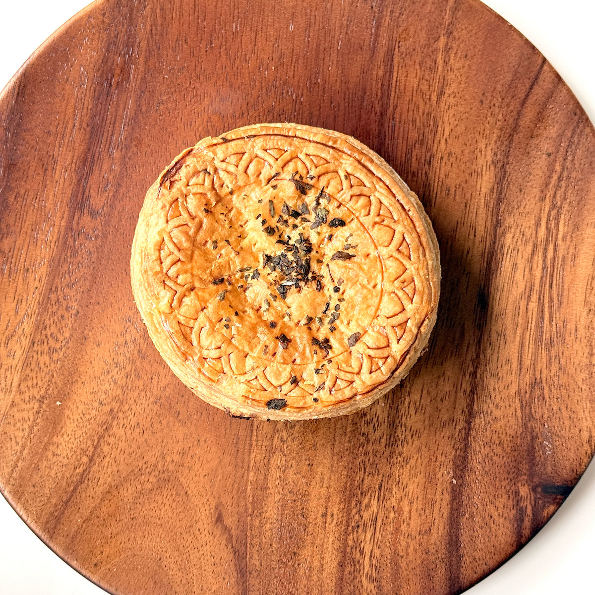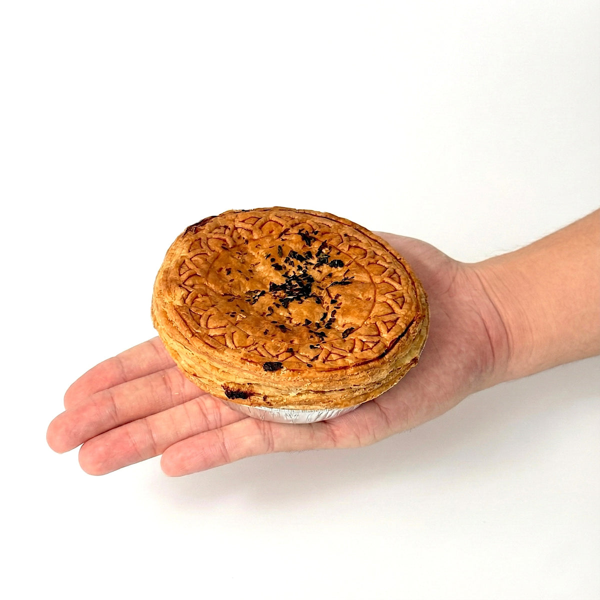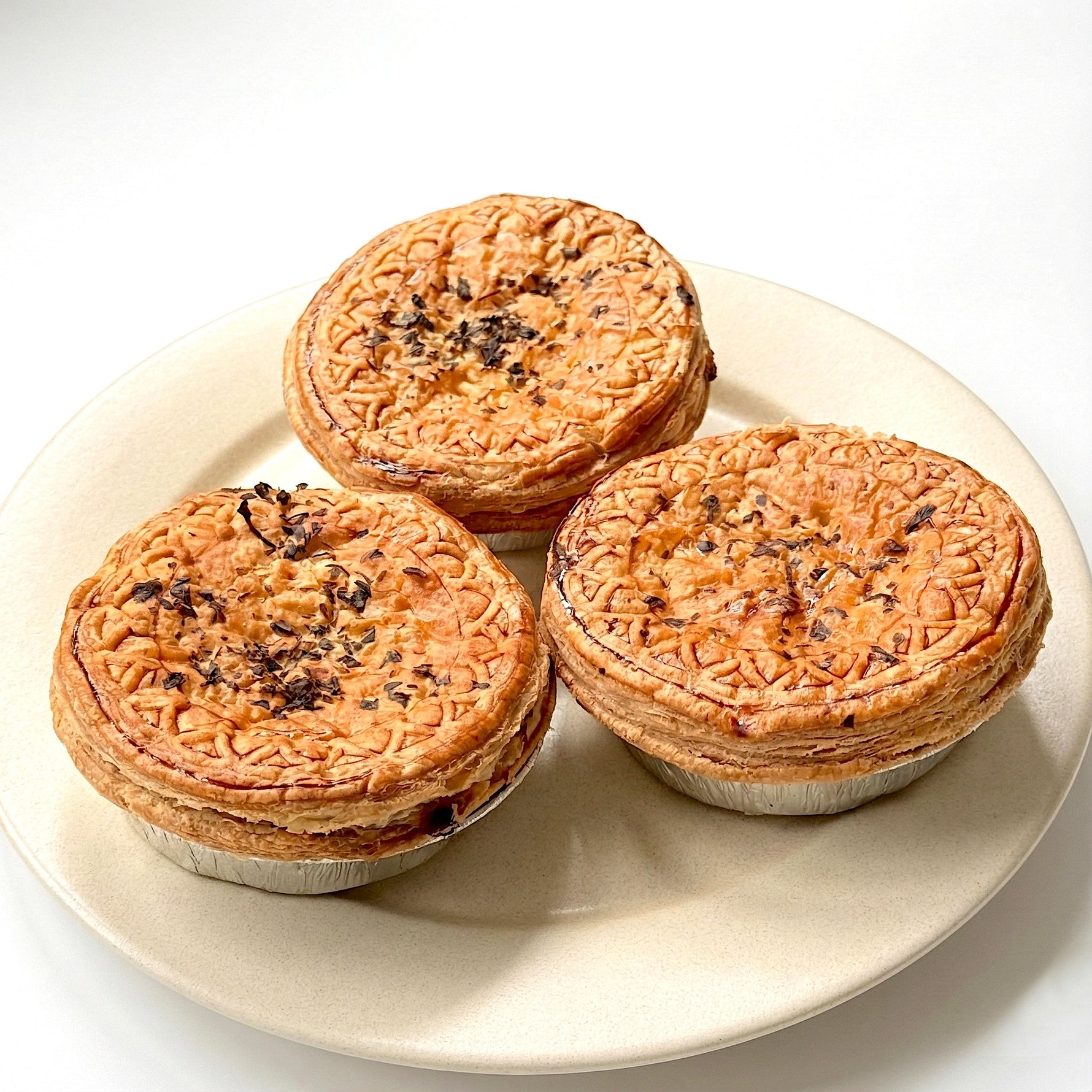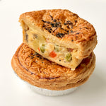 Our signature chicken mushroom pie - rich, creamy filling with tender chicken pieces and mushrooms, wrapped in a crisp, golden crust.