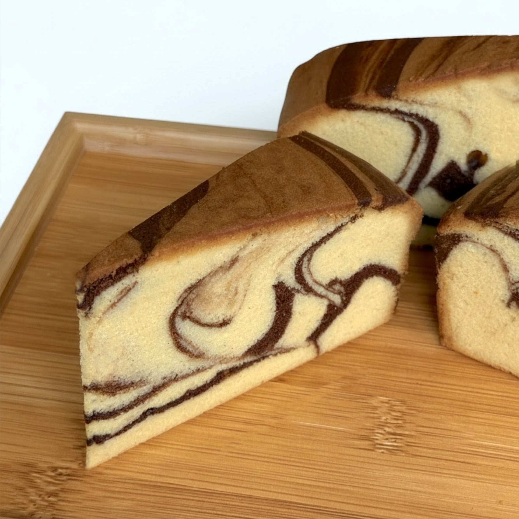 Beautifully swirled chocolate and vanilla cake slices - moist, tender, and perfectly portioned. Each slice is consistently cut for hassle-free serving.