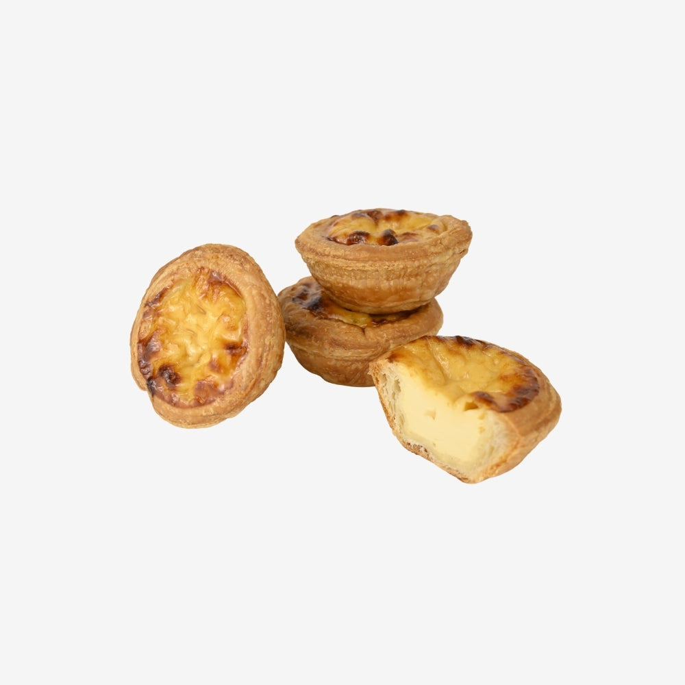 Our classic Portuguese Egg Tart - flaky pastry, creamy custard center, beautifully caramelized top. Just reheat and enjoy bakery-quality tarts in minutes.