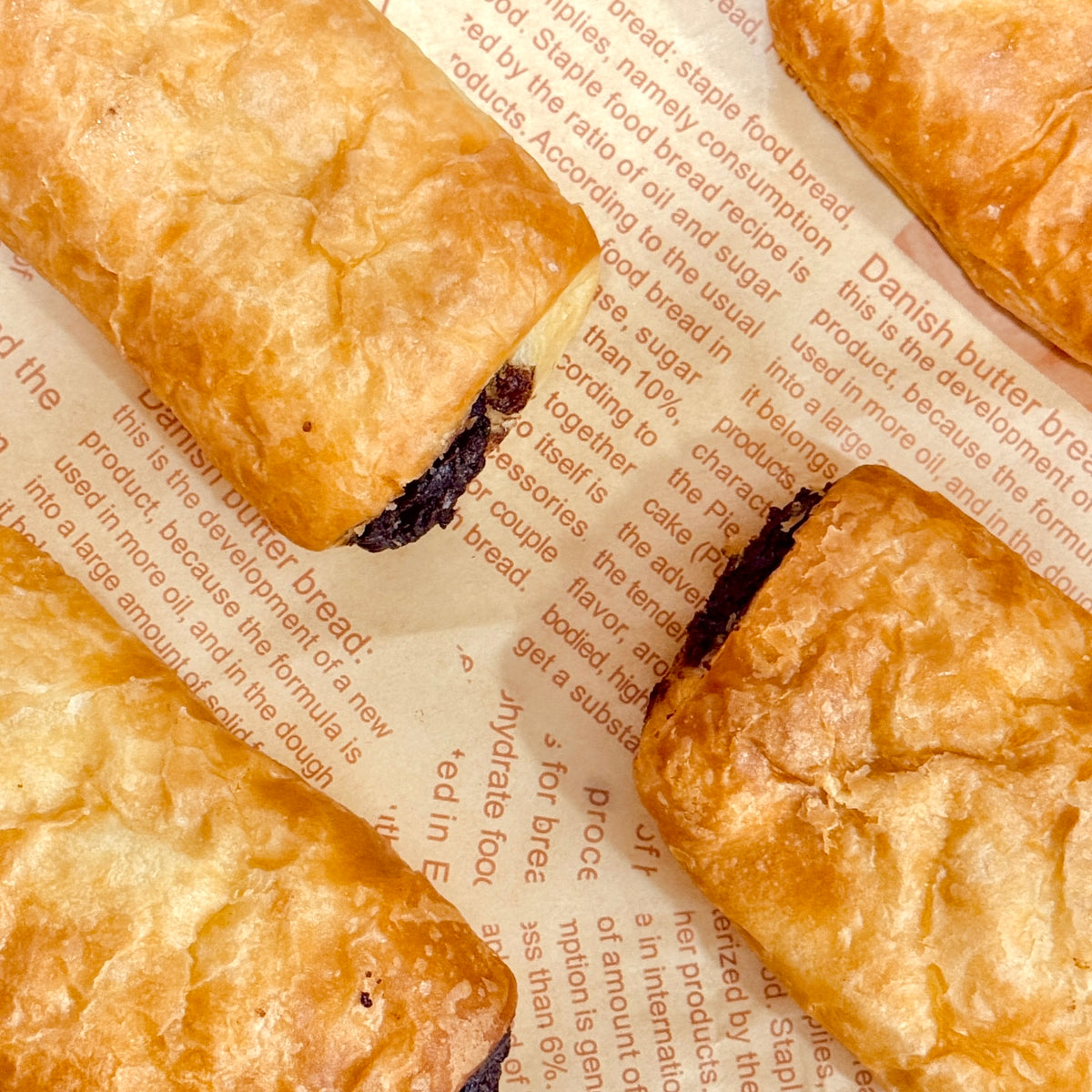 Buttery, flaky pastry swirled with rich, velvety chocolate. A decadent choice for any chocolate lover.
